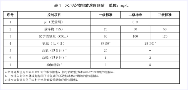 《標(biāo)準(zhǔn)》將PH、懸浮物(SS)、化學(xué)需氧量、氨氮、總氮、總磷和動(dòng)植物油作為水污染控制指標(biāo)。根據(jù)農(nóng)村污水處理設(shè)施排入地表水的環(huán)境功能和保護(hù)目標(biāo),《標(biāo)準(zhǔn)》將上述項(xiàng)目的標(biāo)準(zhǔn)值分為三類?,F(xiàn)有農(nóng)村生活污水處理設(shè)施水污染物排放應(yīng)于2020年12月25日起執(zhí)行本標(biāo)準(zhǔn)。