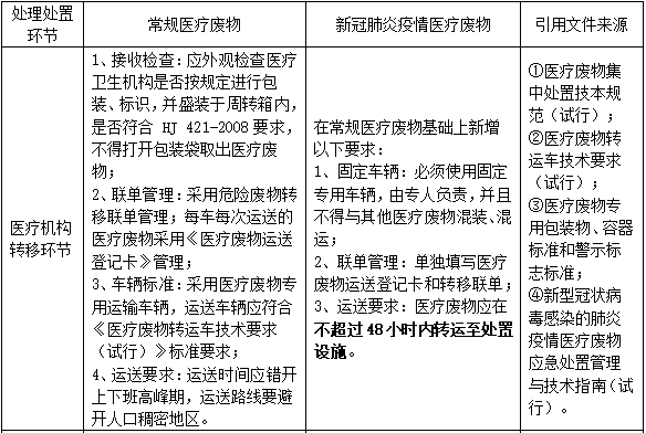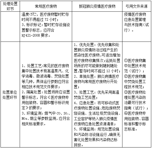 表 新冠肺炎疫情醫(yī)療廢物處理處置全過程環(huán)境管理要求
