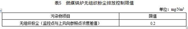 4.5 燃煤鍋爐配套堆場(chǎng)應(yīng)采取封閉措施,燃煤鍋爐房無(wú)組織粉塵濃度執(zhí)行表5的規(guī)定。