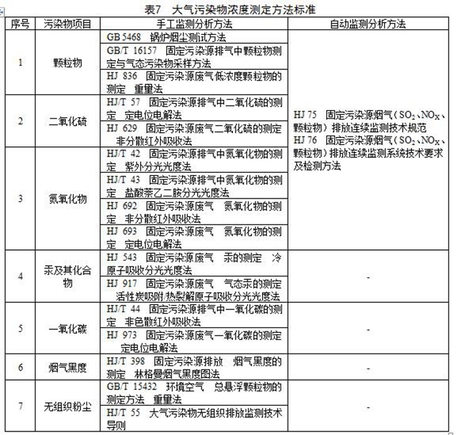 5.1.6 對(duì)大氣污染物排放濃度的測(cè)定采用表7列的方法標(biāo)準(zhǔn)。