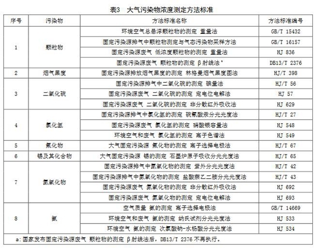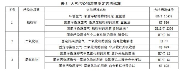5.3大氣污染物濃度測定方法標準對大氣污染物排放濃度的測定選取表3中所列的方法標準。本標準實施后國家發(fā)布的污染物監(jiān)測方法標準,如適用性滿足要求,同樣適用于本標準相應(yīng)污染物的測定。