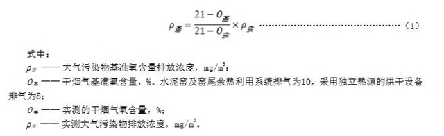 6.3正常工況下,對于水泥窯及窯尾余熱利用系統(tǒng)排氣、采用獨立熱源的烘干設(shè)備排氣,應(yīng)同時對排氣中氧含量進行監(jiān)測,實測大氣污染物排放濃度應(yīng)按公式(1)換算為基準氧含量狀態(tài)下的基準排放濃度,并以此作為判定排放是否達標的依據(jù)。