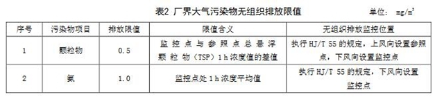 4.2.2自本標準實施之日起,平板玻璃工業(yè)企業(yè)及生產(chǎn)設(shè)施大氣污染物無組織排放監(jiān)控點濃度限值應(yīng)符合表2規(guī)定。