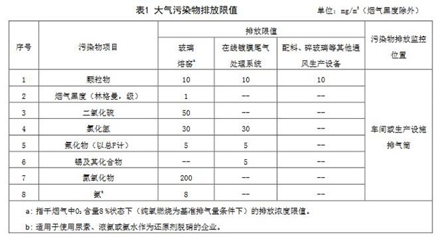 規(guī)定了玻璃熔窯煙氣中顆粒物、二氧化硫、氮氧化物排放限值,分別為10mg/m3、50mg/m3、200mg/m3;增加了氨逃逸控制指標,指標限值為8mg/m3。加強了對大氣污染物無組織排放管控,廠界顆粒物排放限值由現(xiàn)行的1.0mg/m3變?yōu)?.5mg/m3;同時增加了無組織排放氨逃逸控制指標,排放限值為1.0mg/m3。