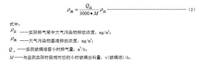 6.4純氧燃燒玻璃熔窯應(yīng)監(jiān)測排氣筒中大氣污染物排氣濃度、排氣量及相應(yīng)時間的玻璃出料量,按式(2)計算基準排放量[3000 m3/t(玻璃液)]條件下的基準排放濃度,并以此作為判定排放是否達標的依據(jù)。