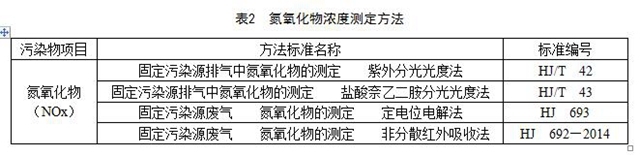 5.6 對(duì)氮氧化物排放濃度的測(cè)定采用表2所列的方法標(biāo)準(zhǔn)。本標(biāo)準(zhǔn)發(fā)布實(shí)施后,有新發(fā)布的國(guó)家環(huán)境監(jiān)測(cè)分析方法標(biāo)準(zhǔn),其方法適用范圍相同的,也適用于本排放標(biāo)準(zhǔn)氮氧化物的測(cè)定。