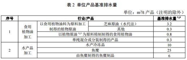 4.2.1 現(xiàn)有企業(yè)自 2022 年 7 月 1 日起,新建企業(yè)自 2021 年 1 月 1 日起,執(zhí)行表 2 規(guī)定的單位產(chǎn)品基準(zhǔn)排水量。