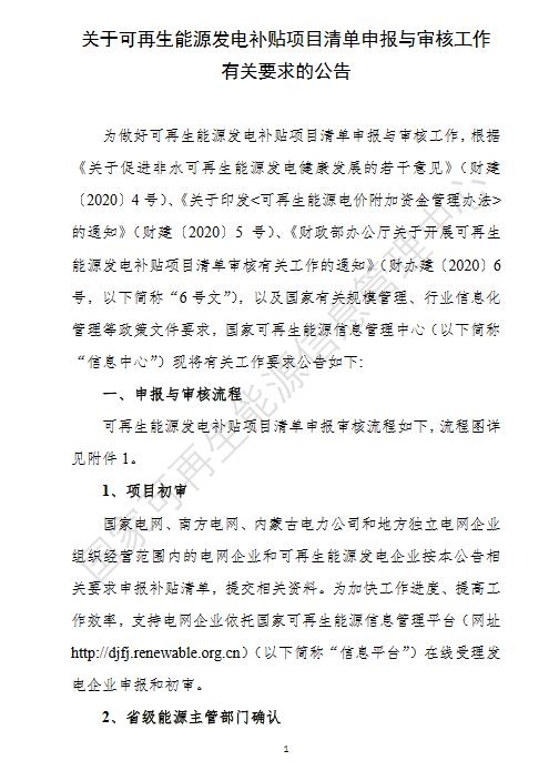 近日,財(cái)政部辦公廳印發(fā)了《關(guān)于開展可再生能源發(fā)電補(bǔ)貼項(xiàng)目清單審核有關(guān)工作的通知》(財(cái)辦建〔2020〕6號(hào),以下簡稱《通知》)、國家可再生能源信息管理中心印發(fā)了《關(guān)于可再生能源發(fā)電補(bǔ)貼項(xiàng)目清單申報(bào)與審核工作有關(guān)要求的公告》(以下簡稱《公告》),對(duì)補(bǔ)貼項(xiàng)目清單審核、公布等工作進(jìn)行了部署。