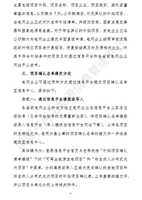 4.電網(wǎng)企業(yè)形成補(bǔ)貼目錄清單后進(jìn)行公示、公布。