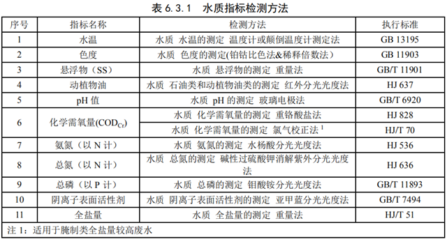 6.3.1 水質(zhì)指標(biāo)檢測方法采用表 6.3.1 所列的方法標(biāo)準(zhǔn)。其他檢測方法如適用性滿足要求可采用。