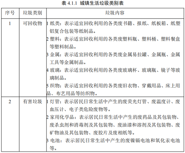 4.1.2 城鎮(zhèn)生活垃圾類別應符合表 4.1.1 的規(guī)定。