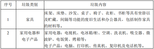 表 4.1.2 大件垃圾類別表