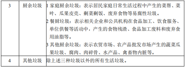 3 廚余垃圾:表示易腐爛的、含有機質的生活垃圾,包括家庭廚余垃圾、餐廚垃圾和其他廚余垃圾等。