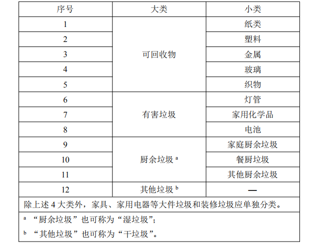 4.1.3 除上述四大類外,大件垃圾和裝修垃圾應單獨分類。