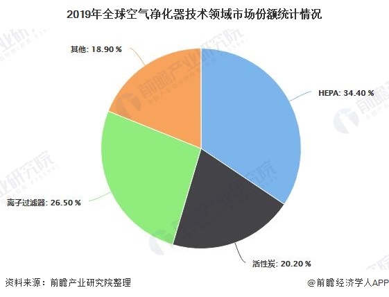 基于技術(shù),空氣凈化器市場細(xì)分為HEPA,活性炭,離子過濾器等。從市場情況來看,2019年HEPA技術(shù)領(lǐng)域占有最大的市場份額,因?yàn)镠EPA過濾器非常有效地捕獲空氣中的顆粒,例如灰塵,花粉,煙霧和生物污染物。
