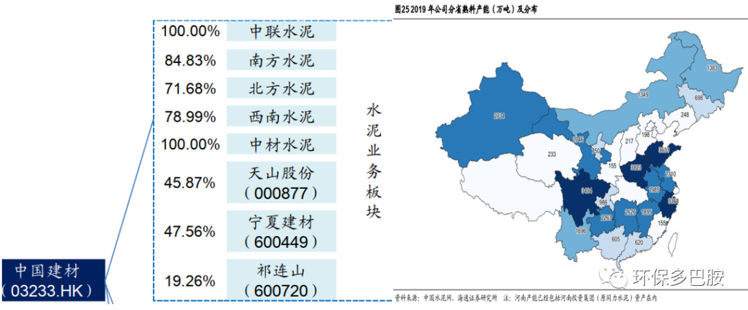 2019年海螺創(chuàng)業(yè)與水泥產(chǎn)能宇宙第一的中國建材(2019年公司水泥產(chǎn)能5.2億噸)成立合資公司:海建香港(股份各占50%,由海螺創(chuàng)業(yè)并表) ,并通過海建香港成立安徽海中環(huán)保開展業(yè)務,全權負責投資、經(jīng)營及管理中國建材從事水泥相關業(yè)務的若干附屬公司現(xiàn)有及未來的固廢處置業(yè)務,預計規(guī)劃處置總產(chǎn)能不少于 300 萬噸/年。