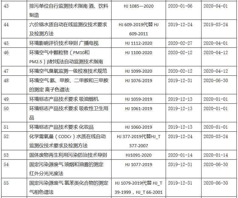原標(biāo)題:速看!生態(tài)環(huán)境部發(fā)布2020年國(guó)家生態(tài)環(huán)境標(biāo)準(zhǔn)清單