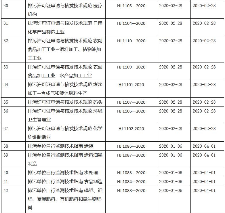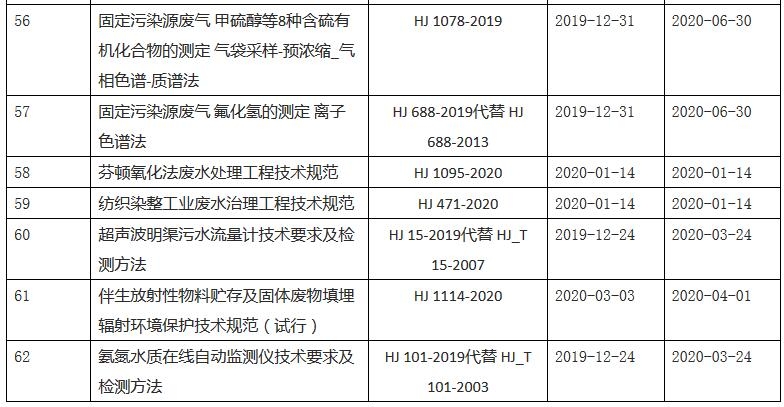 2020年生態(tài)環(huán)境部實(shí)施國(guó)家生態(tài)環(huán)境標(biāo)準(zhǔn)清單