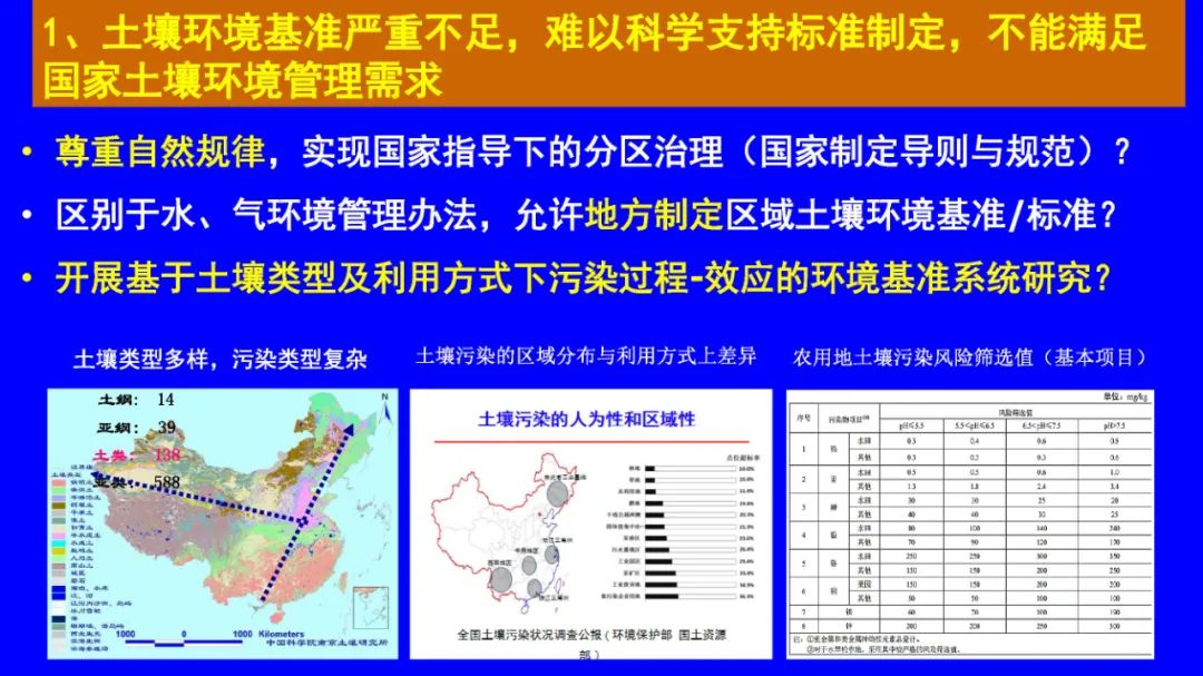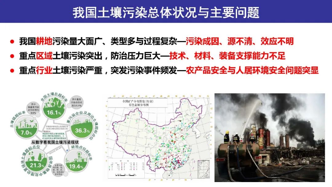 我國(guó)耕地污染量大面廣,類(lèi)型多過(guò)程復(fù)雜。重點(diǎn)區(qū)域土壤污染突出,防治壓力巨大,重點(diǎn)行業(yè)土壤污染嚴(yán)重,突發(fā)事件頻發(fā)?;谝陨贤寥牢廴粳F(xiàn)狀,專(zhuān)家論述了我國(guó)土壤污染管控與修復(fù)研究發(fā)展與需求。