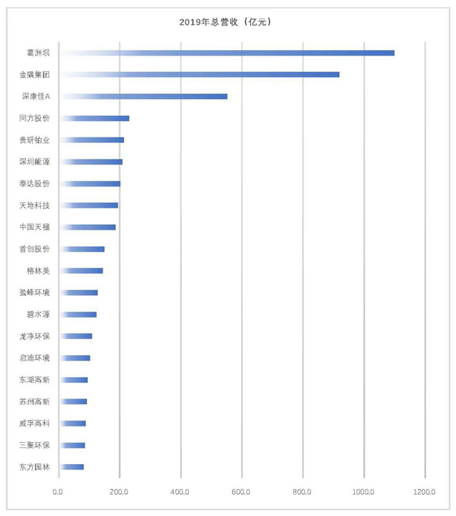 2019年A股環(huán)保上市公司總營(yíng)收TOP20