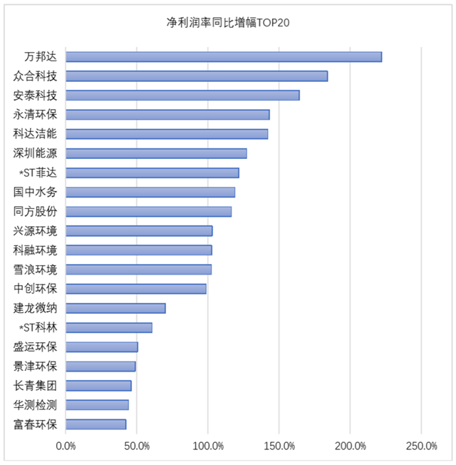 2019年大氣污染防治(A股+港股)環(huán)保上市公司凈利潤(rùn)率及其同比增幅TOP10