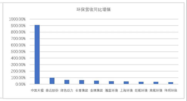 2019年大氣污染防治A股環(huán)保上市公司環(huán)保營(yíng)收同比增幅TOP10