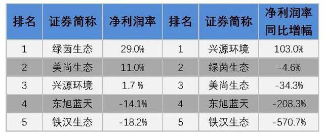 2019年環(huán)境修復(fù)A股環(huán)保上市公司凈利潤(rùn)率及其同比增幅排名