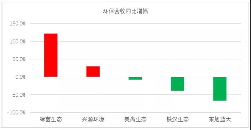 2019年環(huán)境修復A股環(huán)保上市公司環(huán)保營收同比增幅排名: