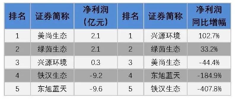 2019年環(huán)境修復A股環(huán)保上市公司凈利潤及其同比增幅排名: