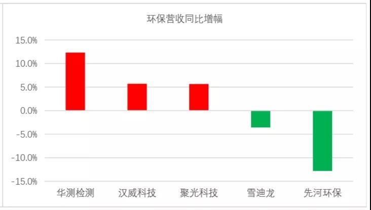 2019年環(huán)境監(jiān)測與檢測A股環(huán)保上市公司環(huán)保營收同比增幅排名: