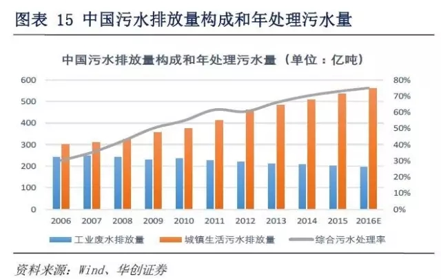 中國污水排放量構(gòu)成和年處理污水量