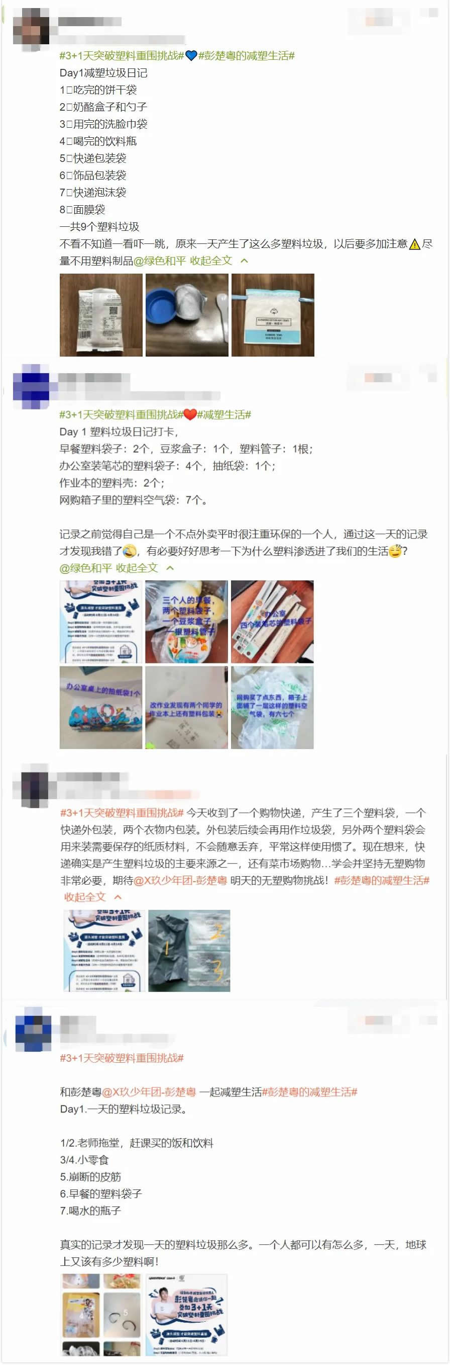 由綠色和平減塑生活代言人彭楚粵與綠色和平共同發(fā)起的“3+1天突破塑料重圍挑戰(zhàn)”,已經(jīng)正式開始啦!