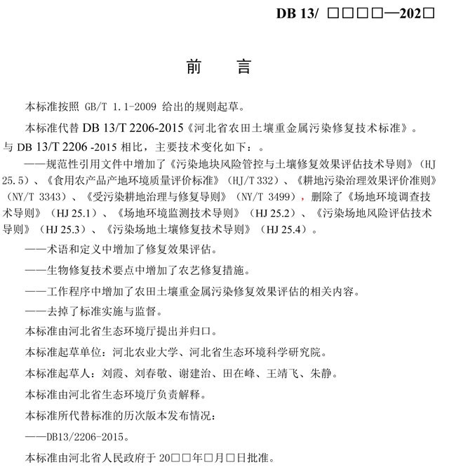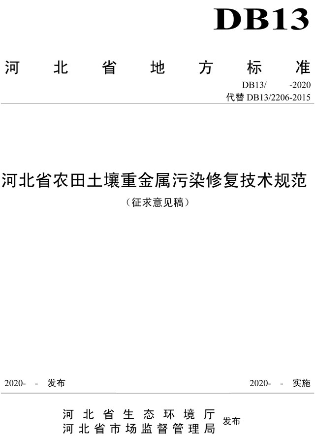 原標(biāo)題:河北省農(nóng)田土壤重金屬污染修復(fù)技術(shù)規(guī)范(征求意見(jiàn)稿)