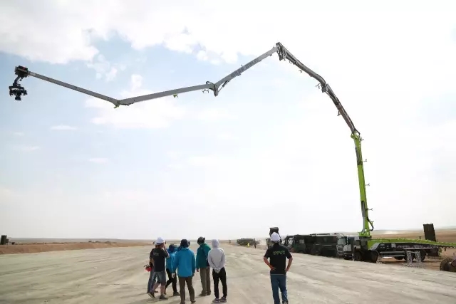 作為此次全球直播任務(wù)唯一大型裝備專供企業(yè),中聯(lián)重科共調(diào)派了95噸及以上的大噸位汽車起重機(jī),4.0泵車,消防云梯車等10余臺高端設(shè)備助力央視拍攝。據(jù)中聯(lián)重科該項目技術(shù)負(fù)責(zé)人趙建陽介紹,與以往的閱兵儀式不同,此次沙場閱兵地處塞北大漠之中,光照強(qiáng)烈,常年風(fēng)沙大,對設(shè)備和現(xiàn)場工作人員而言都是極大的考驗。