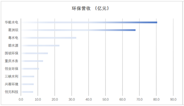 2020年上半年水務A股環(huán)保上市公司環(huán)保營收TOP10