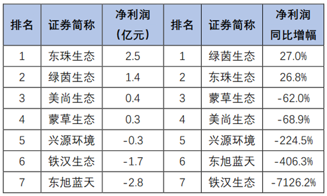 2020年上半年環(huán)境修復A股環(huán)保上市公司凈利潤及其同比增幅排名