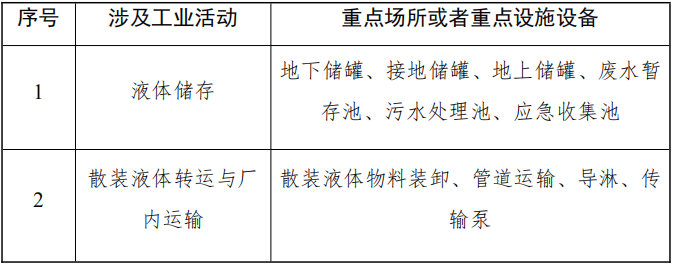 表2有潛在土壤污染隱患的重點(diǎn)場(chǎng)所或者重點(diǎn)設(shè)施設(shè)備