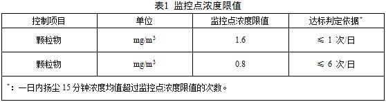 本標準規(guī)定了包括揚塵監(jiān)控點濃度限值、最高允許超標頻次、監(jiān)測和監(jiān)控等要求。
