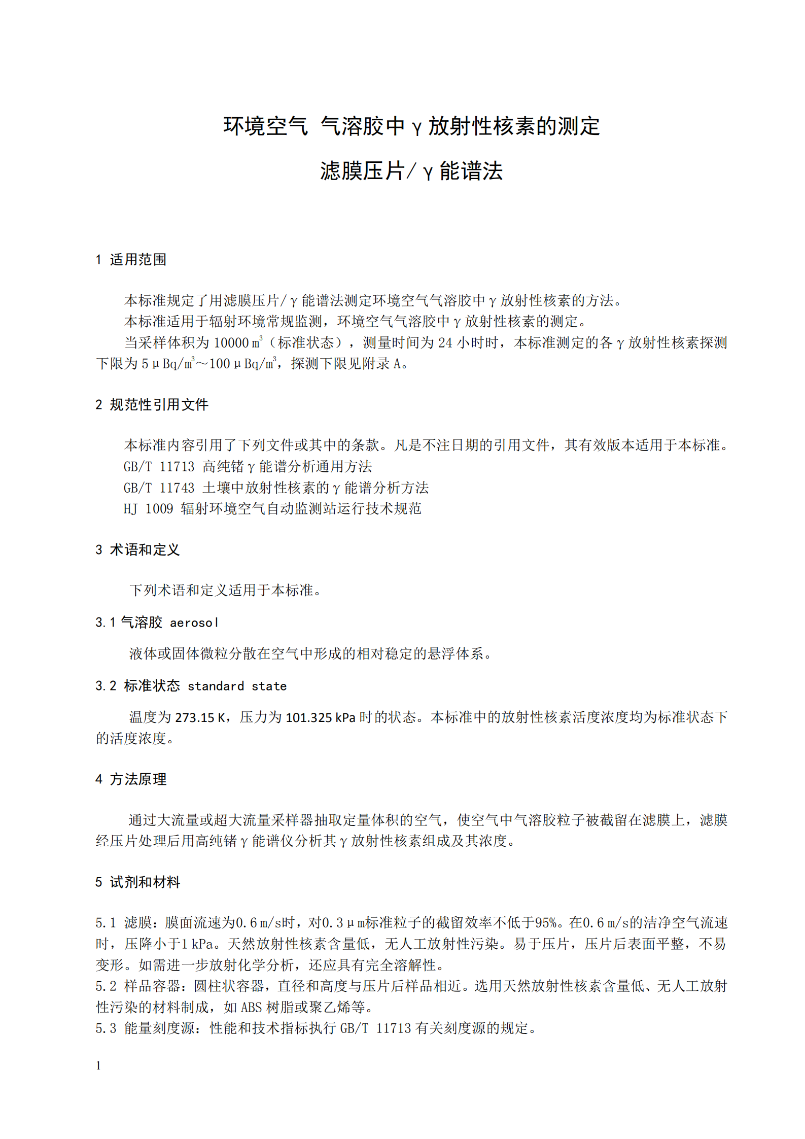 本標準適用于輻射環(huán)境常規(guī)監(jiān)測,環(huán)境空氣氣溶膠中γ放射性核素的測定。