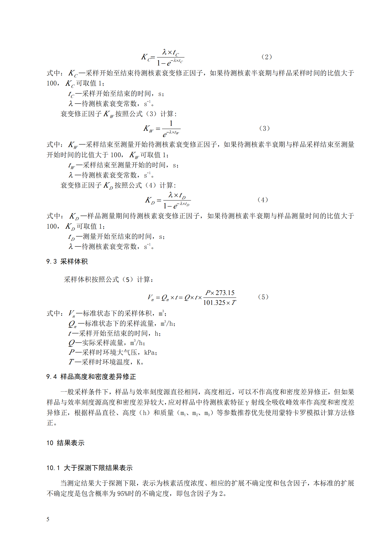 當采樣體積為 10000 m 3(標準狀態(tài)),測量時間為 24 小時時,本標準測定的各γ放射性核素探測 下限為 5μBq/m 3~100μBq/m 3,探測下限見附錄 A。