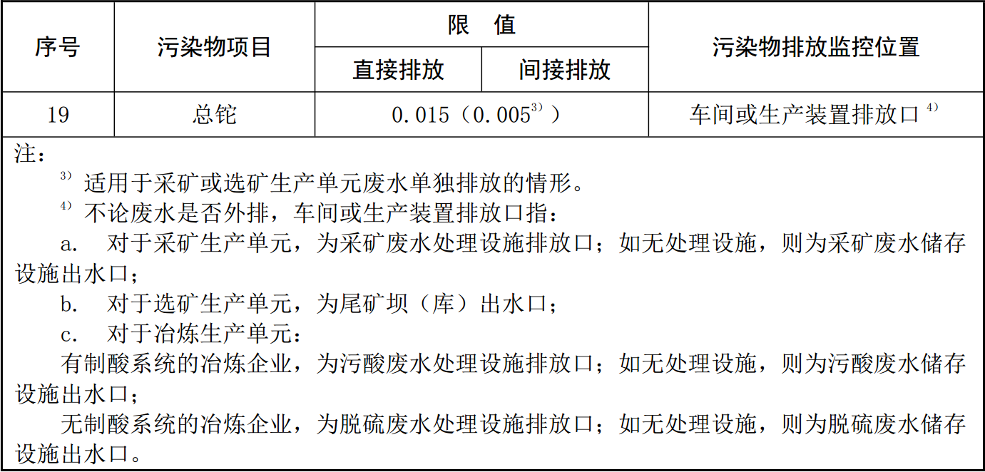 二、在“表 2 新建企業(yè)水污染物排放限值”“表 3 水污染物特別排放限值”中,增加總鉈排放限值要求(單位為 mg/L):