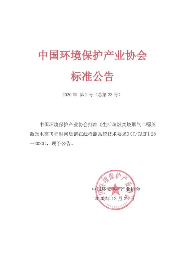 原標(biāo)題:富春環(huán)保:關(guān)于《生活垃圾焚燒煙氣二噁英激光電離飛行時(shí)間質(zhì)譜在線檢測(cè)系統(tǒng)技術(shù)要求》團(tuán)體標(biāo)準(zhǔn)獲批準(zhǔn)的公告