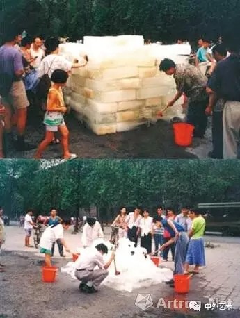 上世紀(jì)90年代,不少國內(nèi)藝術(shù)家已經(jīng)用藝術(shù)作品表現(xiàn)環(huán)境破壞問題。類似藝術(shù)家尹秀珍1995年的行為藝術(shù)《洗河》便是因為當(dāng)時成都府南河和全國的許多河流一樣,污染非常嚴(yán)重。為了形象地說明問題的嚴(yán)重性,尹秀珍借用現(xiàn)代工業(yè)手段將府南河河水取出了十立方米,在冰廠制成冰塊,然后再運回到岸邊以清水加以洗刷。過路的行人和市民見狀也紛紛參與其中。
