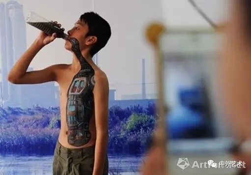 在上海第二屆廣告人藝術(shù)展上,由全球環(huán)保公益組織“綠色和平”等創(chuàng)意展示的行為藝術(shù)--“飲水兒童”讓現(xiàn)場觀眾頗具視覺的震撼,藝術(shù)家通過在模特兒童身上創(chuàng)意畫出宛如人體內(nèi)臟的一個“水污染處理器”圖案,以此警示,污染飲用水對人類所造成的無法彌補的傷害,引發(fā)社會對水污染問題的關(guān)注和重視。