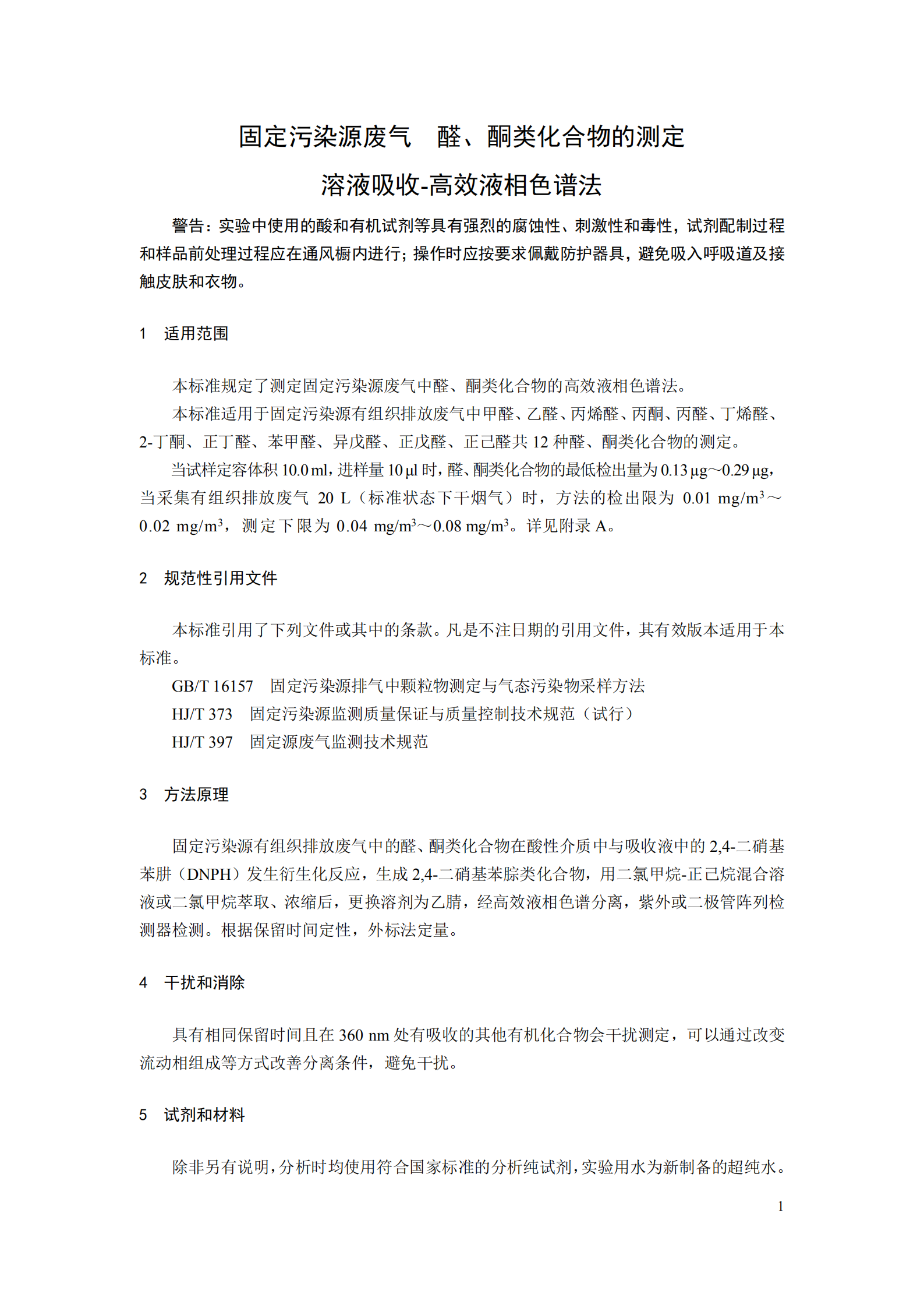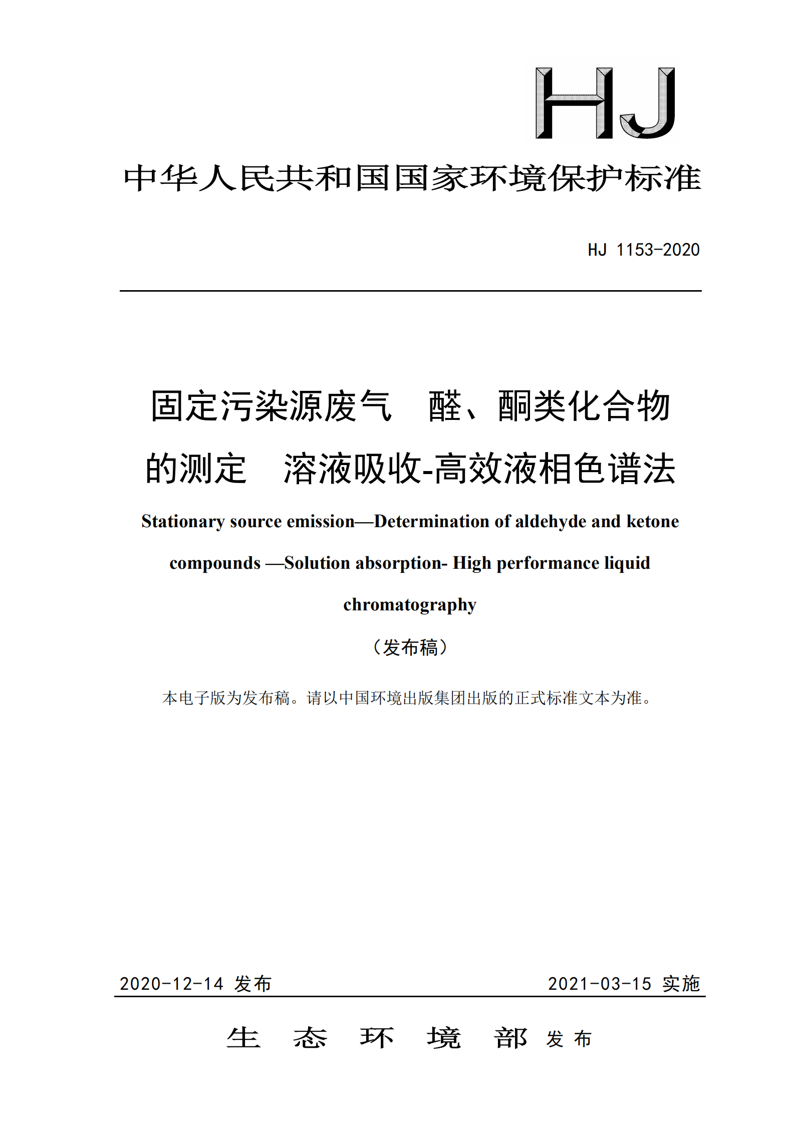 本標(biāo)準(zhǔn)規(guī)定了測定固定污染源廢氣中醛、酮類化合物的高效液相色譜法。