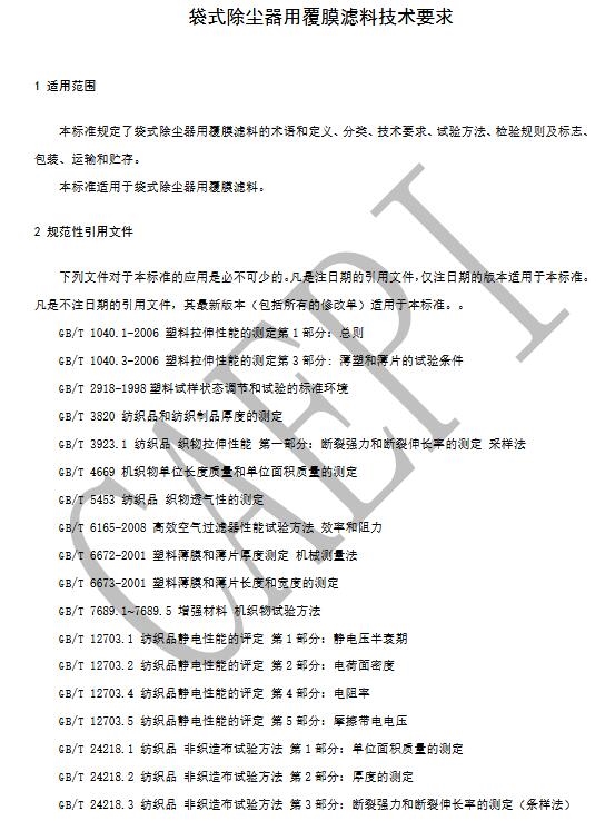關(guān)于征求中國(guó)環(huán)境保護(hù)產(chǎn)業(yè)協(xié)會(huì)標(biāo)準(zhǔn)《袋式除塵器用覆膜濾料》意見(jiàn)的函