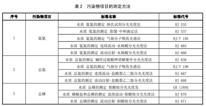對水污染物測定的項目及與之對應的測定方法見表2,表2中對部分污染物指標的測定,可根據(jù)檢測資源情況,選擇適宜的方法,但對同一項指標,每次測定均宜采用同一種方法,測定數(shù)值異常時,可用不同的方法驗證。