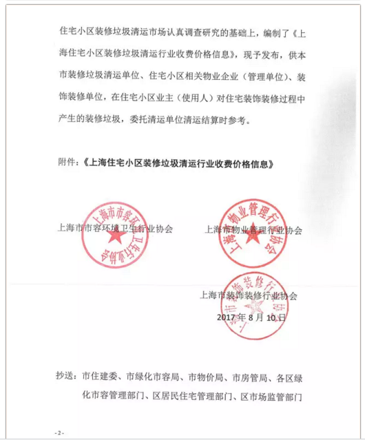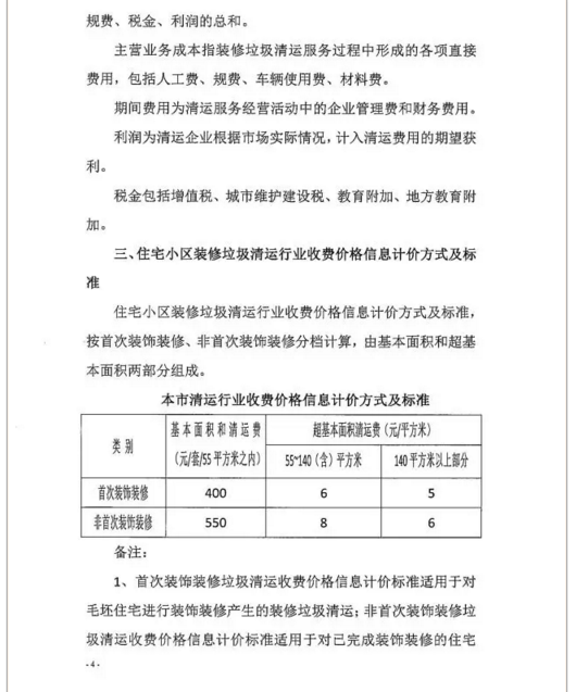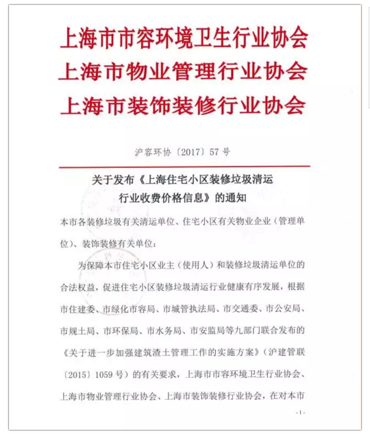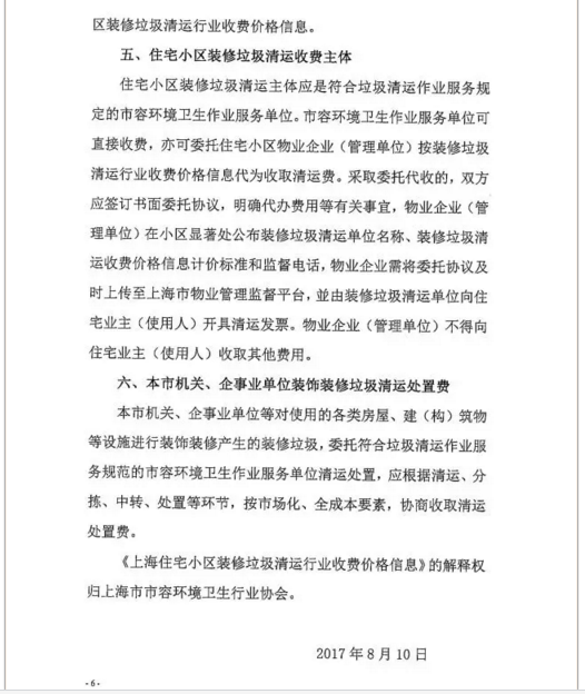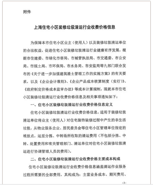 《上海市住宅小區(qū)裝修垃圾清運行業(yè)收費價格信息》全文內容如下: