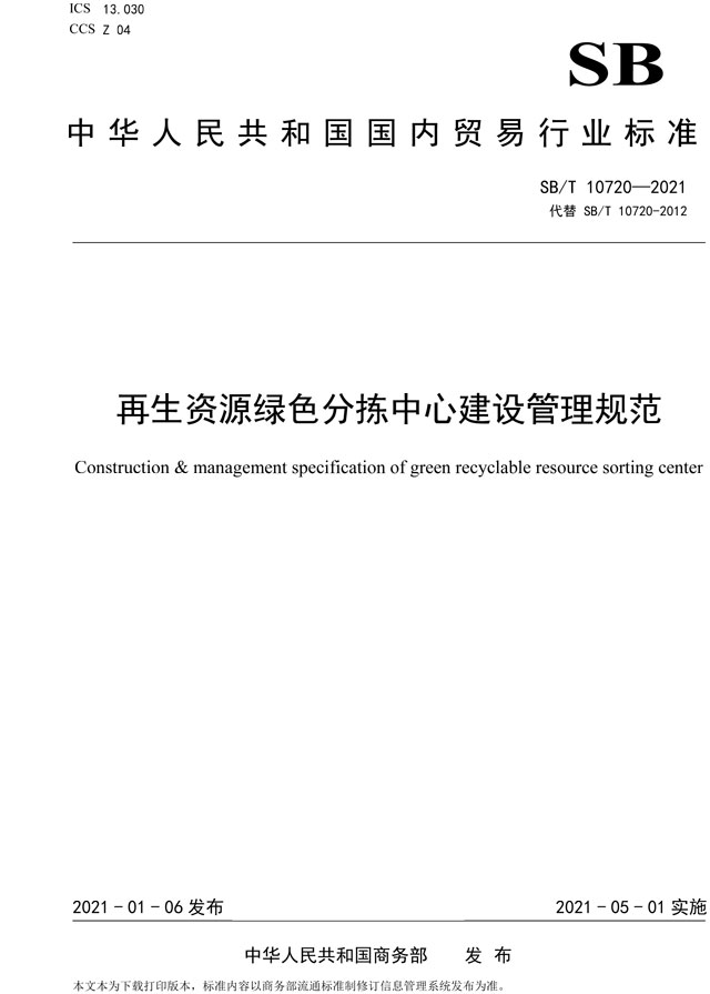 原標題:《再生資源綠色分揀中心建設管理規(guī)范》(SB/T 10720-2021)行業(yè)標準解讀