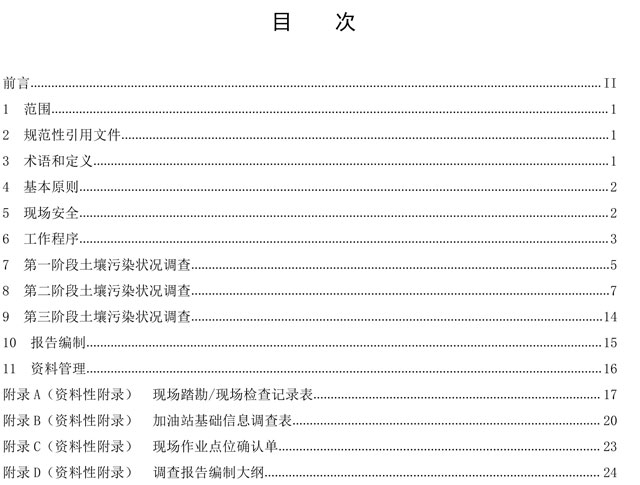 本文件規(guī)定了加油站地塊土壤污染狀況調(diào)查的基本原則、工作程序、現(xiàn)場(chǎng)安全、技術(shù)要求、報(bào)告編制和資料管理。